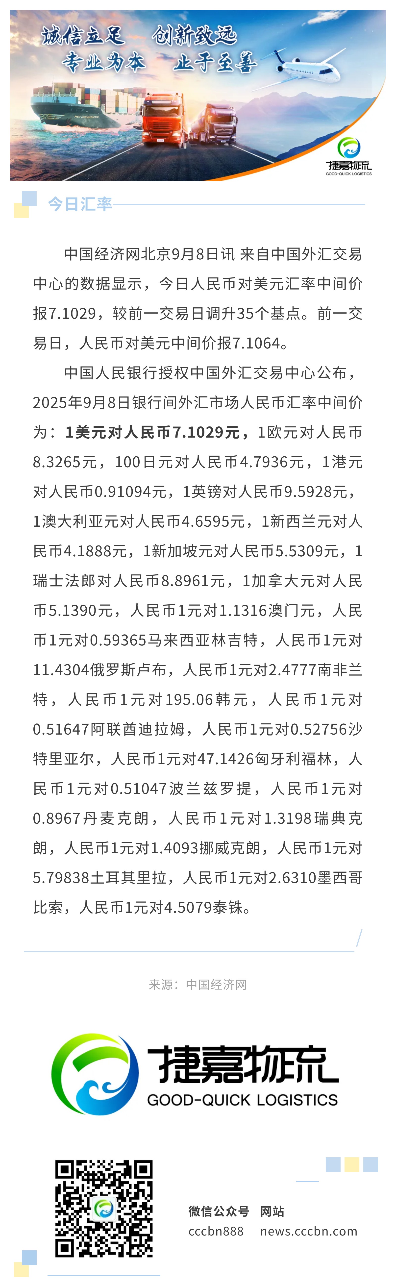 9月8日人民币兑美元中间价报7.1029,调升35个基点