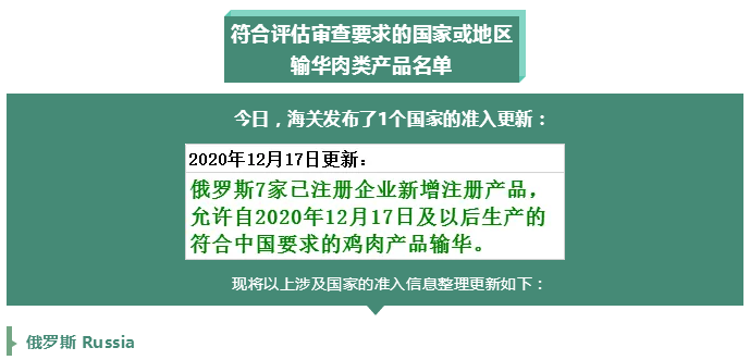 海关总署 |【准入更新】允许俄罗斯7家已注册企业新增注册产品输华(2020年12月17日更新)