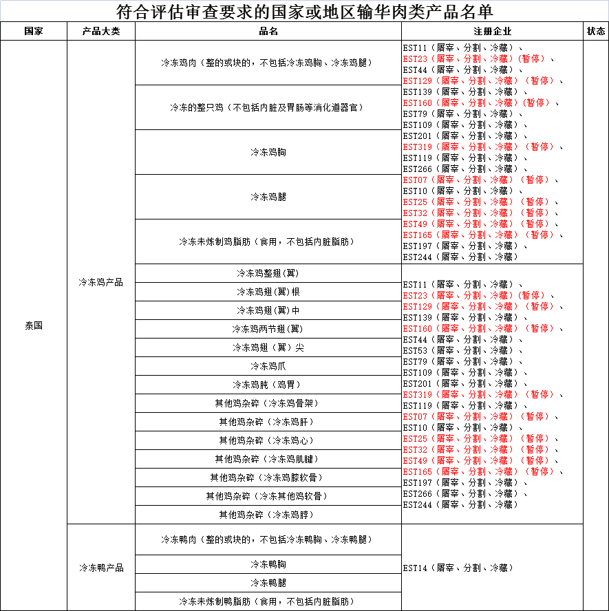 ⬆ 自2021年10月13日零时起暂停接受泰国1家在华注册企业(注册编号为EST109)产品进口申报1周,期满后自动恢复。
