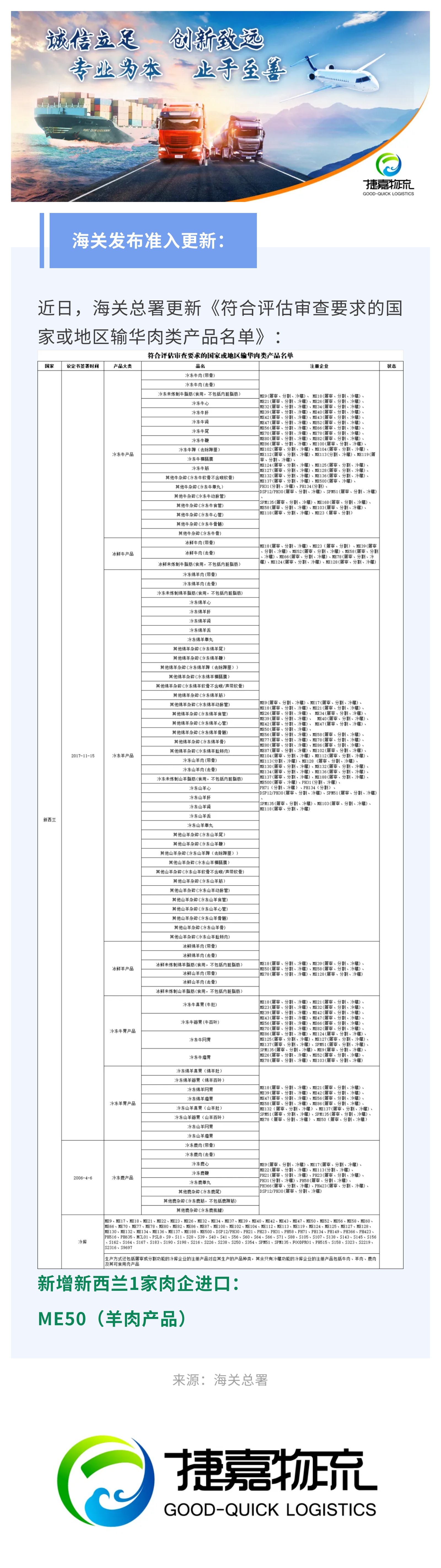 捷嘉 · 快讯 |【准入更新】新增新西兰1家肉企产品进口