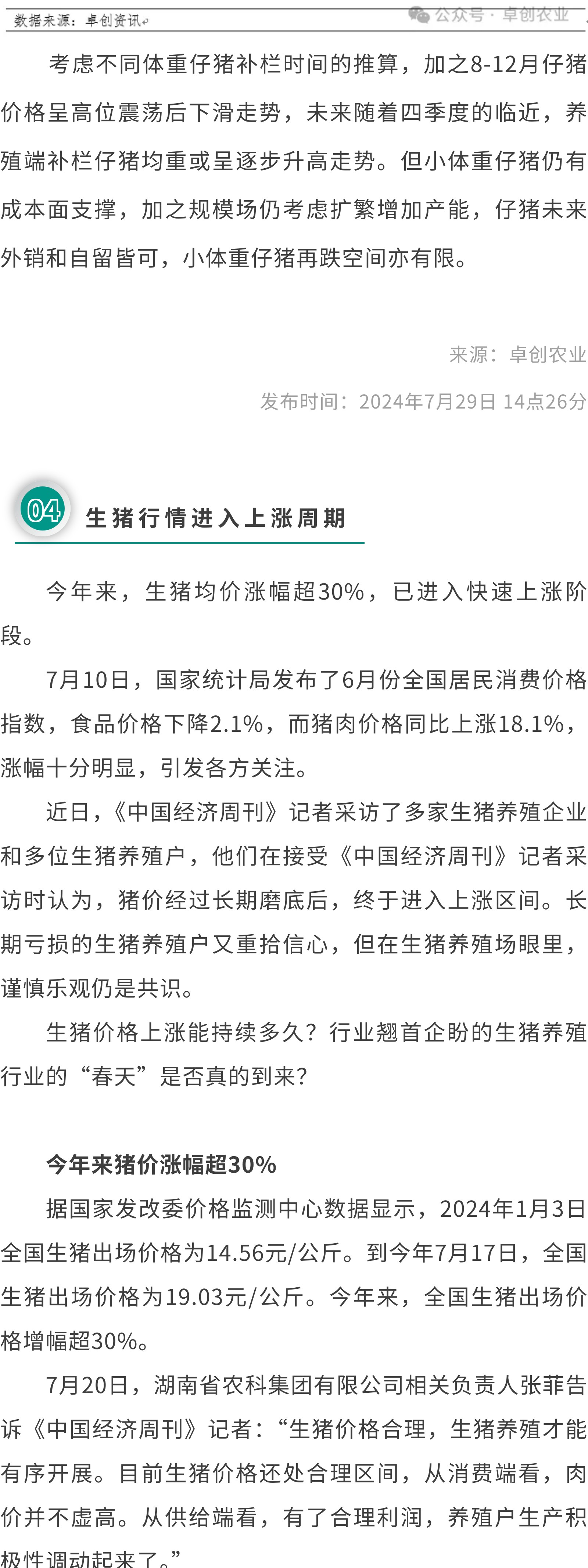 捷嘉 ·关注 | ①注意!中国对进口欧盟生猪的依赖度下降!②2024年6月生猪产品数据③仔猪补栏体重或逐步升高,8-12月育肥盈利或先高后低④生猪行情进入上涨周期⑤降至“1字头”!牛肉价格回到10年前?