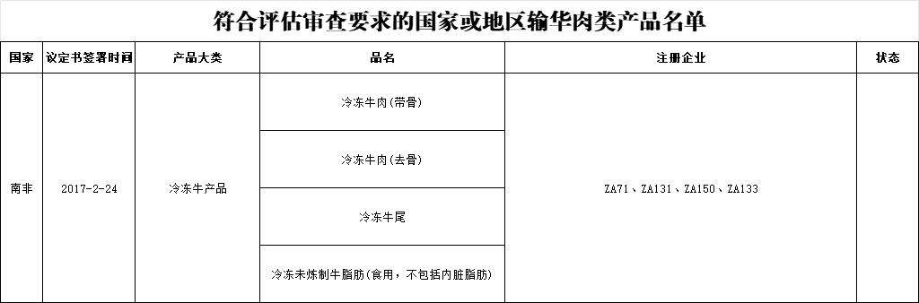 新增南非1家肉类工厂进口: