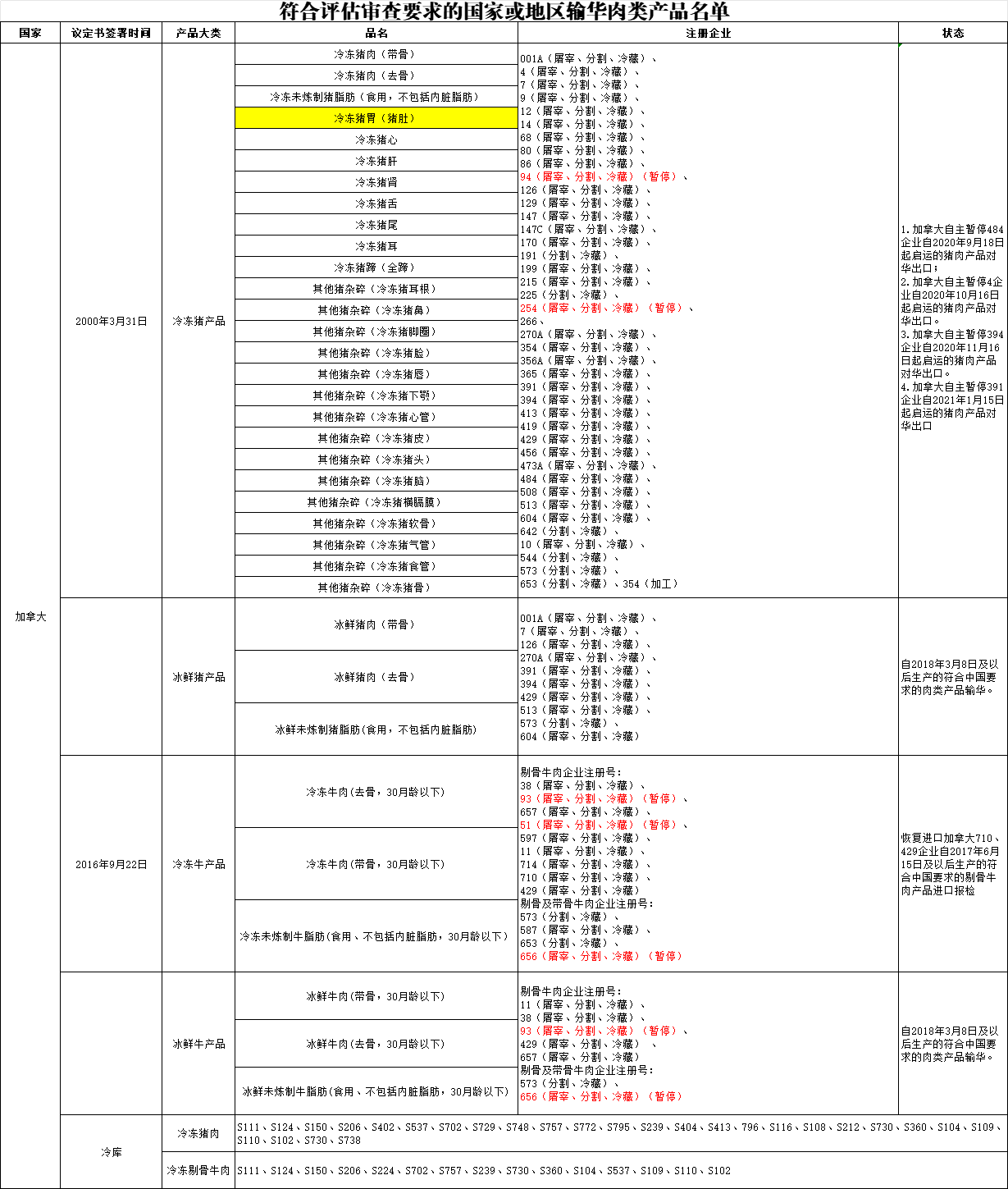 新增加拿大1家肉类工厂进口: