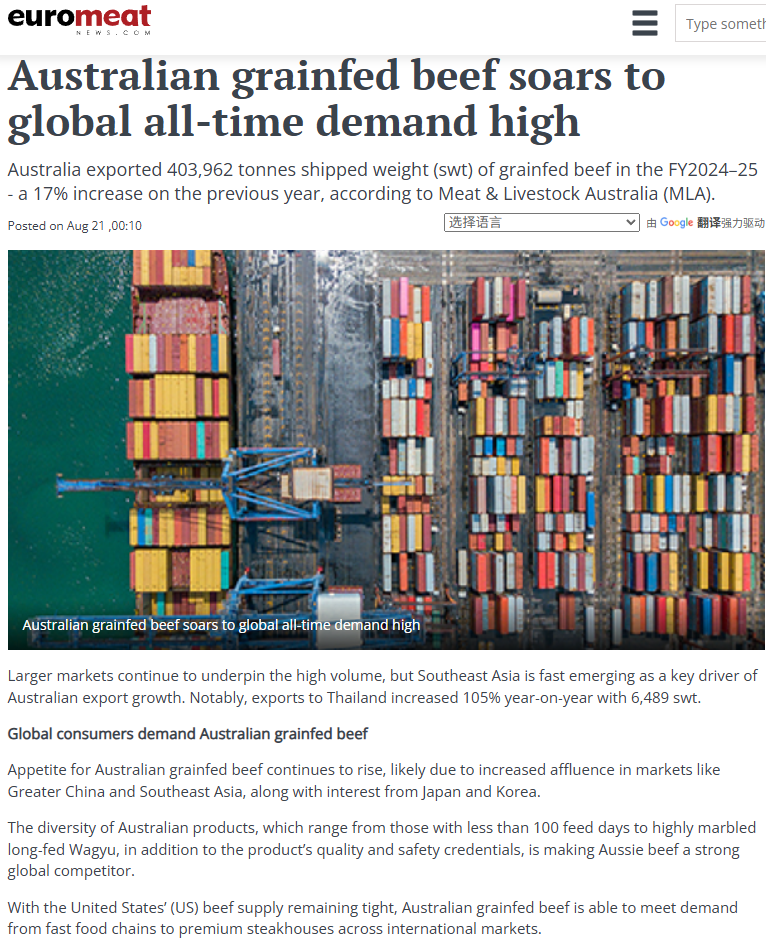 全球需求浪潮袭来,澳大利亚谷饲牛肉站上顶峰
