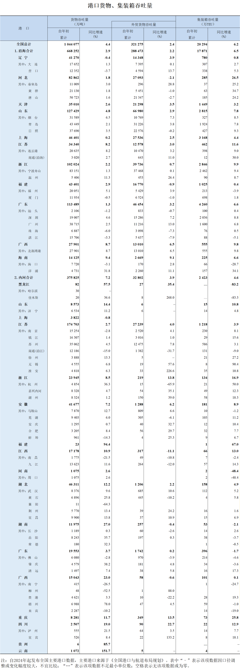 07 | 2025年1-7月港口货物、集装箱吞吐量 |
