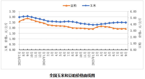 据对全国500个县集贸市场和采集点的监测,2025年9月份,鸡蛋、商品代肉雏鸡、鸡肉、肉牛、肉羊、生鲜乳价格环比上涨,生猪产品、商品代蛋雏鸡、玉米价格环比下降,豆粕、配合饲料价格环比持平。按集贸市场监测口径,本月猪粮比价为5.55:1,比上月下跌0.19个点。