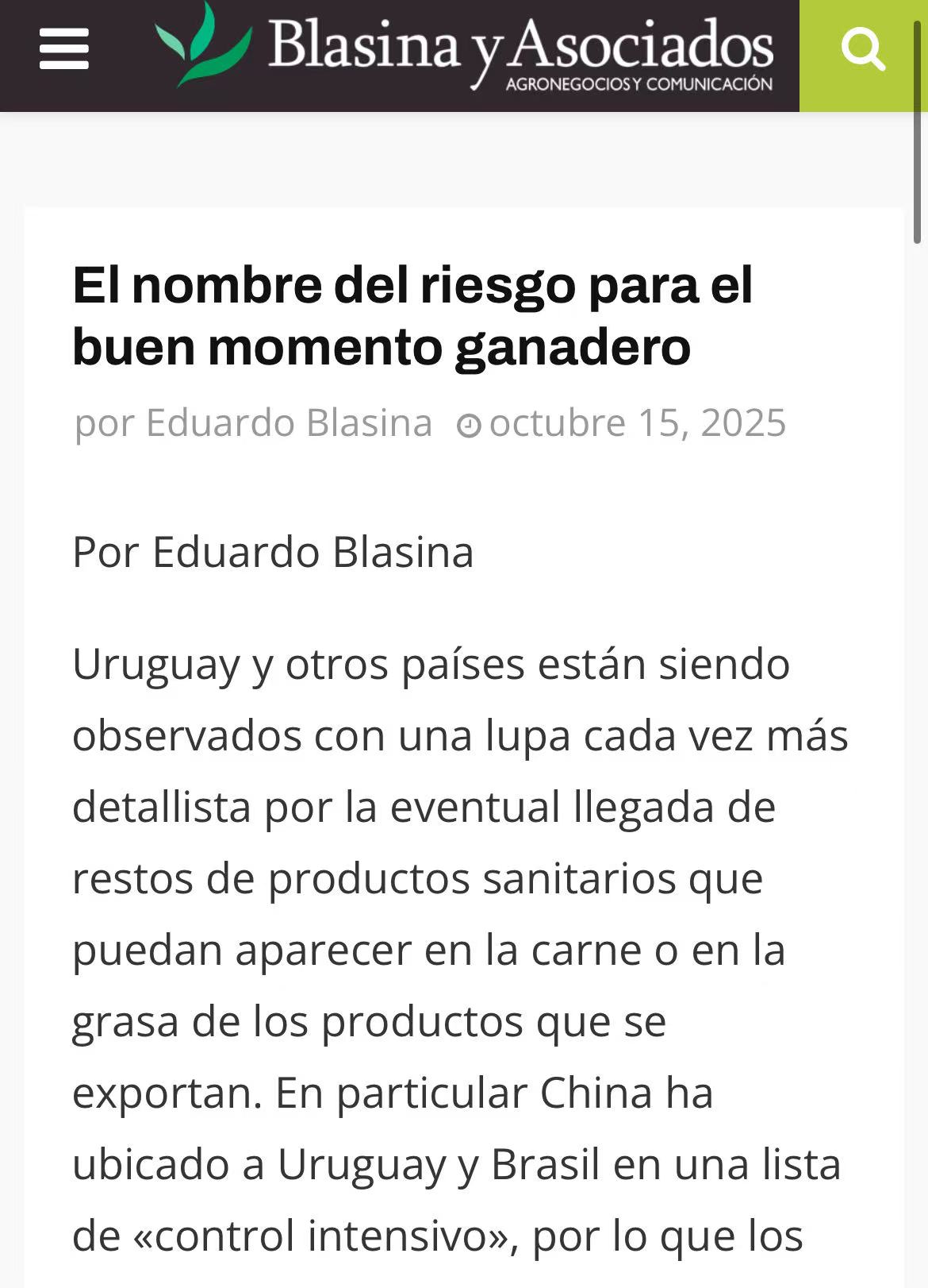 乌拉圭巴西面临更严残留检测