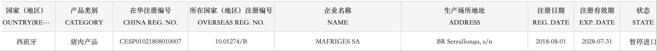 【准入更新】暂停西班牙多家猪肉企业产品输华
