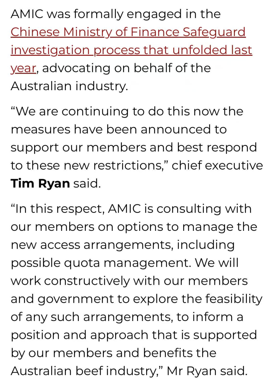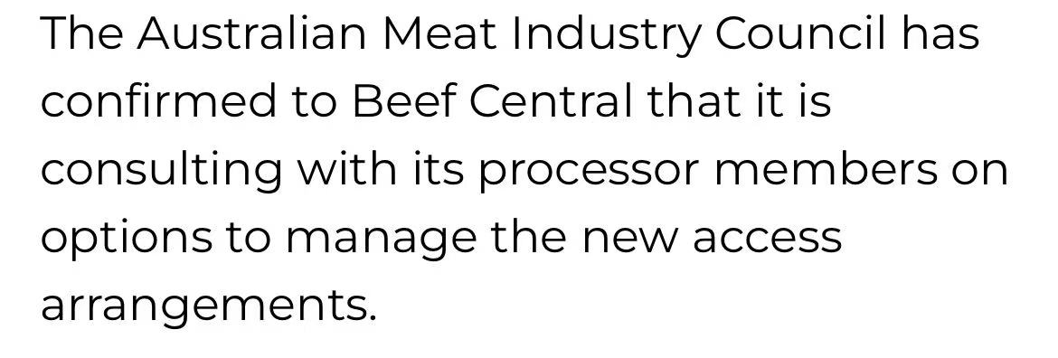 澳大利亚肉类工业委员会(AMIC)已与主要企业展开磋商,探讨可行路径。多家加工企业支持该倡议,认为若不加以管理,配额快速用尽可能导致牛肉转向其他市场,压全球价格,造成重大损失。