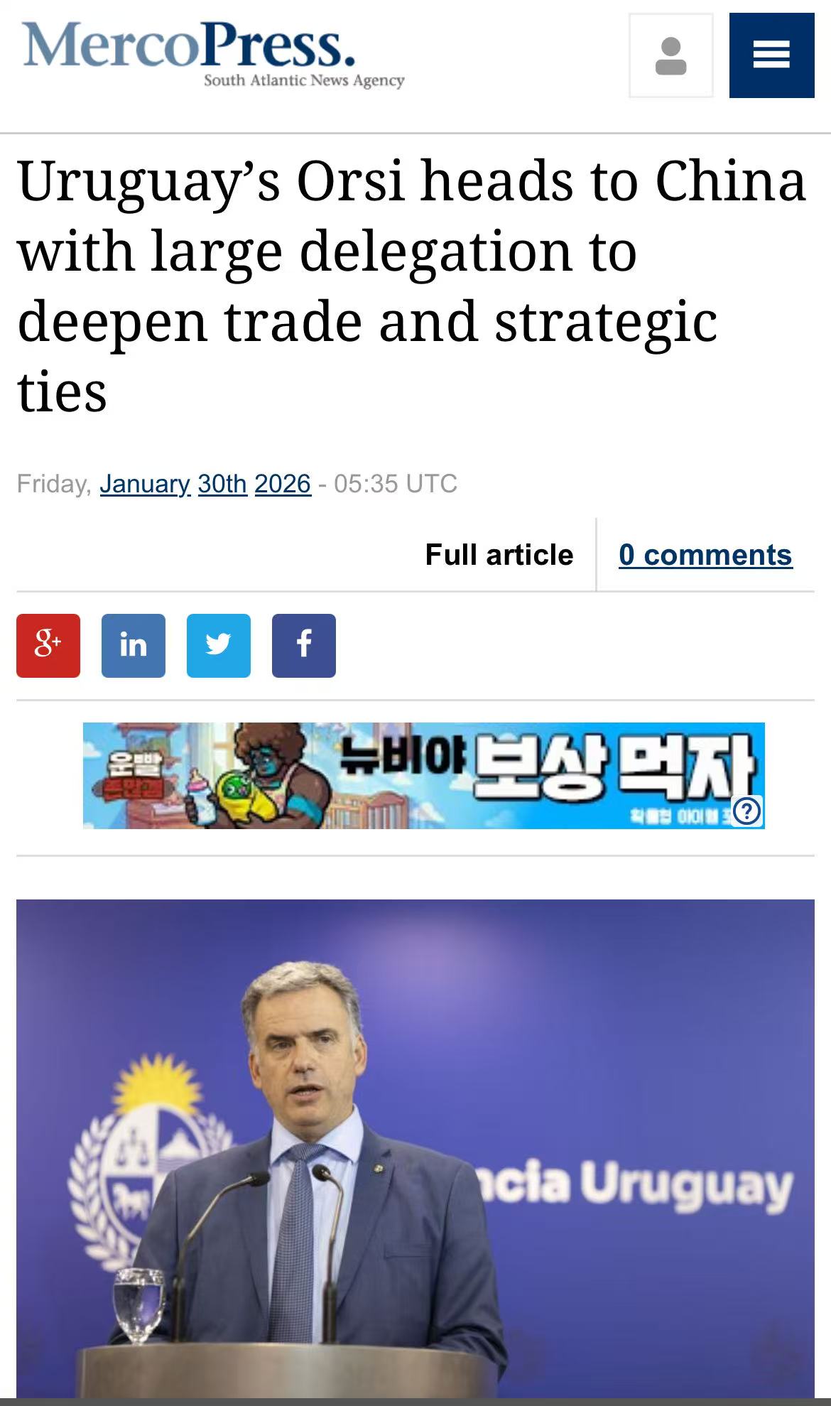 此外,乌拉圭国家肉类协会将与中国相关技术机构签署食品安全合作备忘录,强化贸易规范与合规保障。为象征两国长期产业联系,乌方还将赠送记述其肉类工业发展史的中文版书籍,总统奥尔西亲自作序。