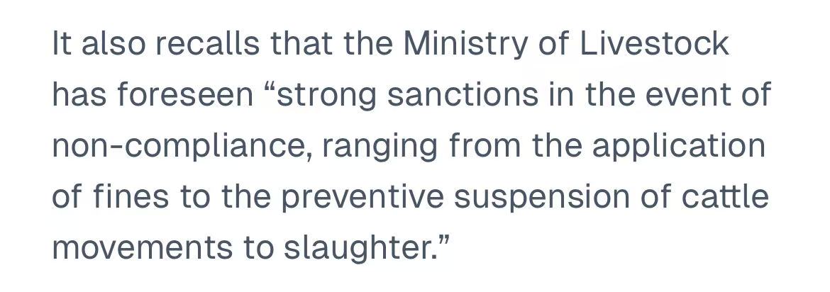 协会强调,养殖户必须仅使用官方许可的兽药,并严格执行休药期规定。乌拉圭牧农渔业部已明确,将对违规行为实施严厉处罚,包括罚款乃至暂停屠宰资格等措施。