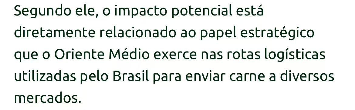 巴西肉类出口商协会(Abiec)主席佩罗萨警告说,美国、以色列与伊朗的冲突,可能影响到巴西30%到40%的牛肉出口。