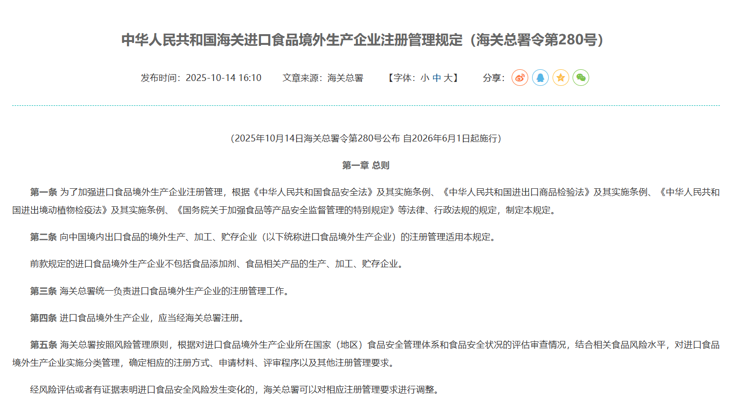 去年10月海关总署发布的第280号令,还有两个多月就要落地了。2026年6月1日起,新的《进口食品境外生产企业注册管理规定》将正式实施,现行的248号令同步废止。