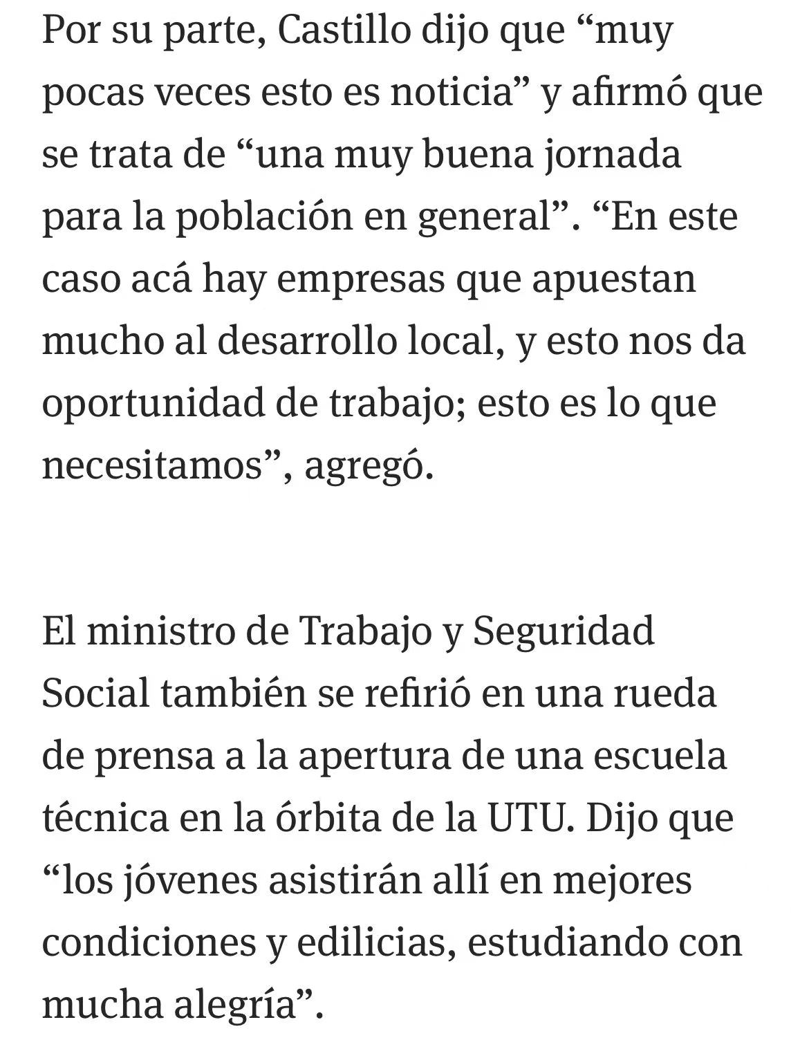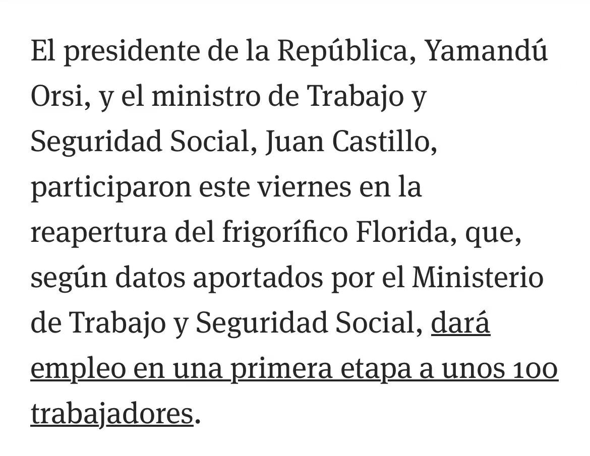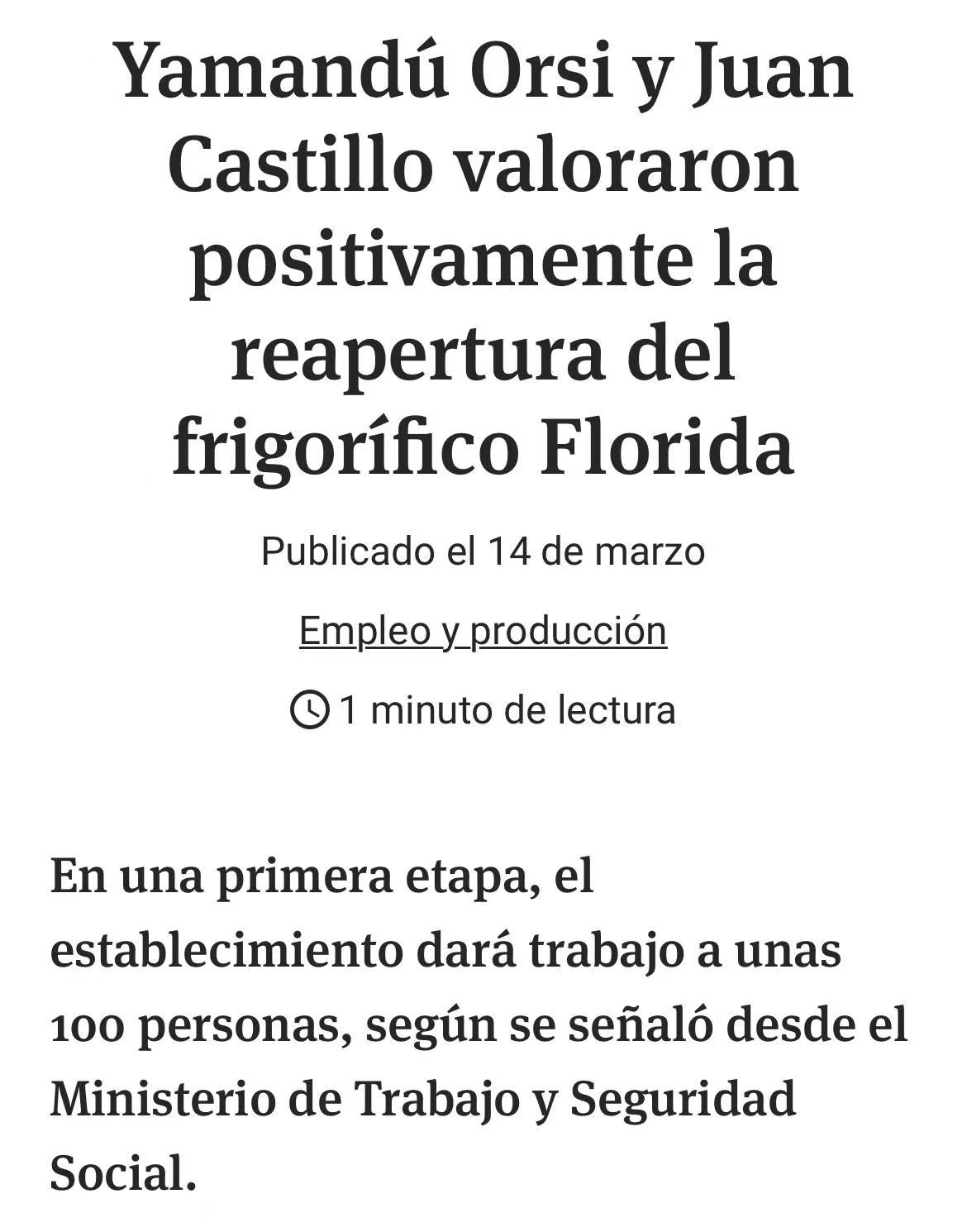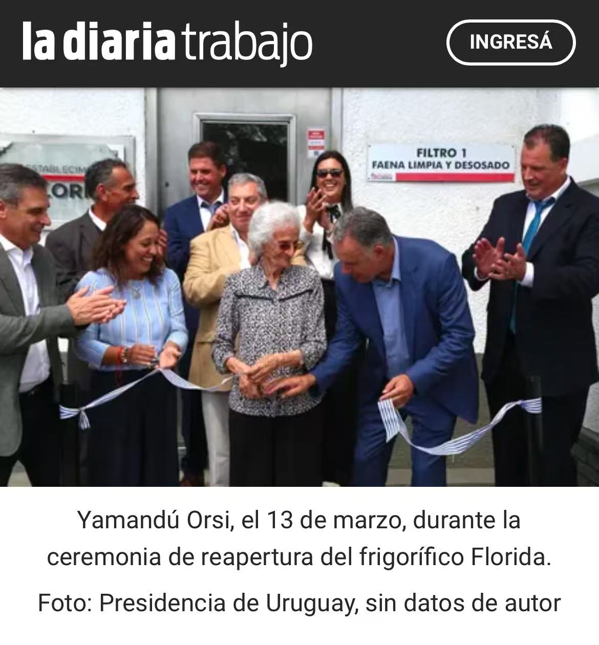 当地时间3月13日,乌拉圭佛罗里达屠宰厂(365厂)正式恢复生产,总统亚曼杜·奥尔西、劳动与社会保障部长胡安·卡斯蒂略出席开业仪式。