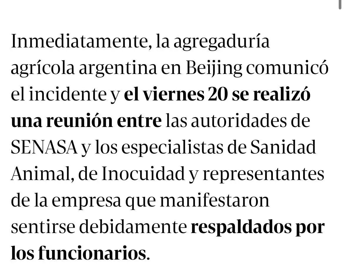 阿方初步分析认为可能存在假阳性或与其他物质混淆的情况,已向中方提交阿根廷肉类残留物国家监管计划相关材料,以证明其卫生安全保障体系的有效性。阿方正在等待中方提供涉事批次的详细信息,以便追溯至养殖源头。