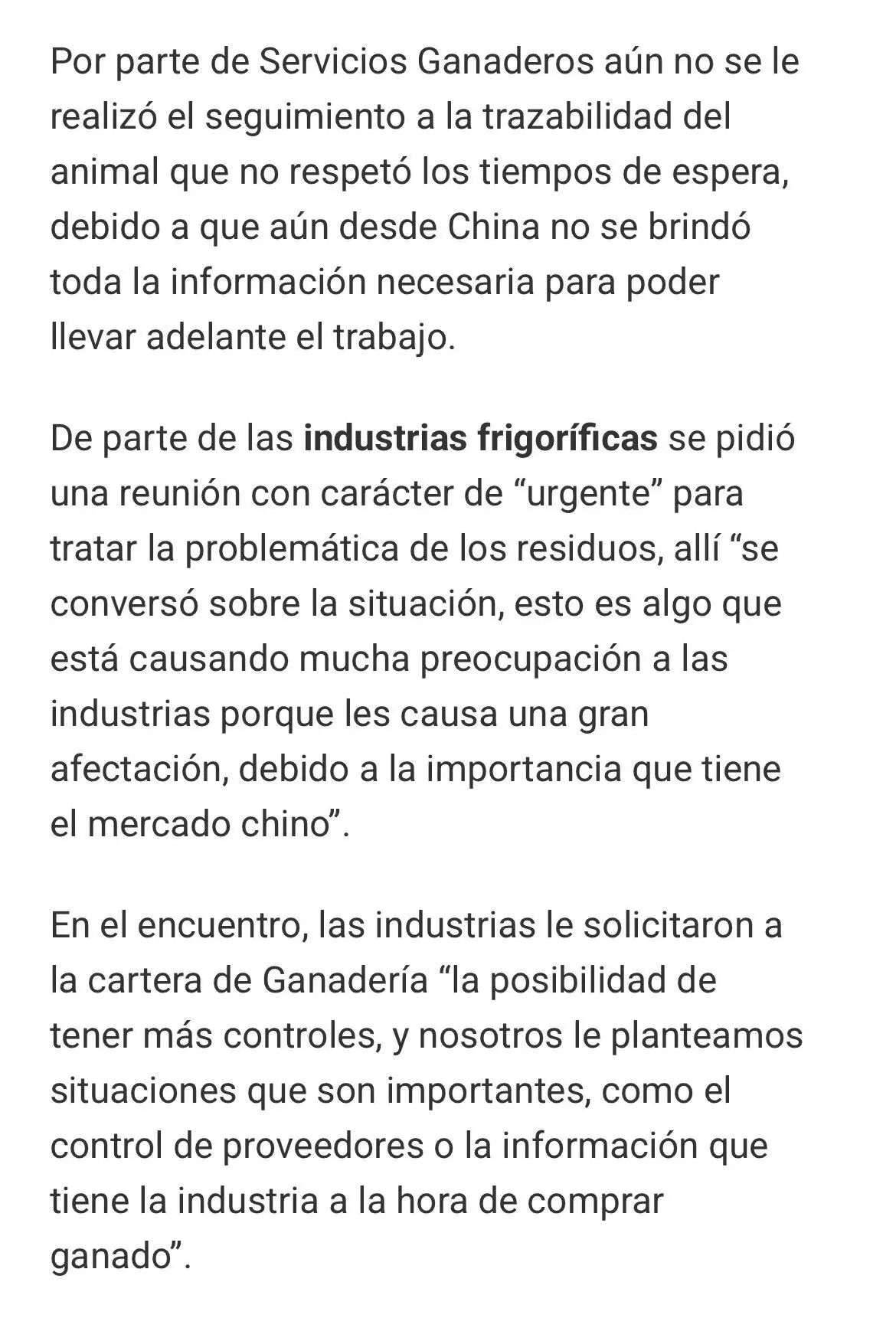 目前,乌方仍在等待中方提供开展溯源所需的全部信息。与此同时,乌拉圭肉类行业已召开紧急会议,讨论残留物管控问题,并提出加强供应商管理、完善采购信息记录等建议。