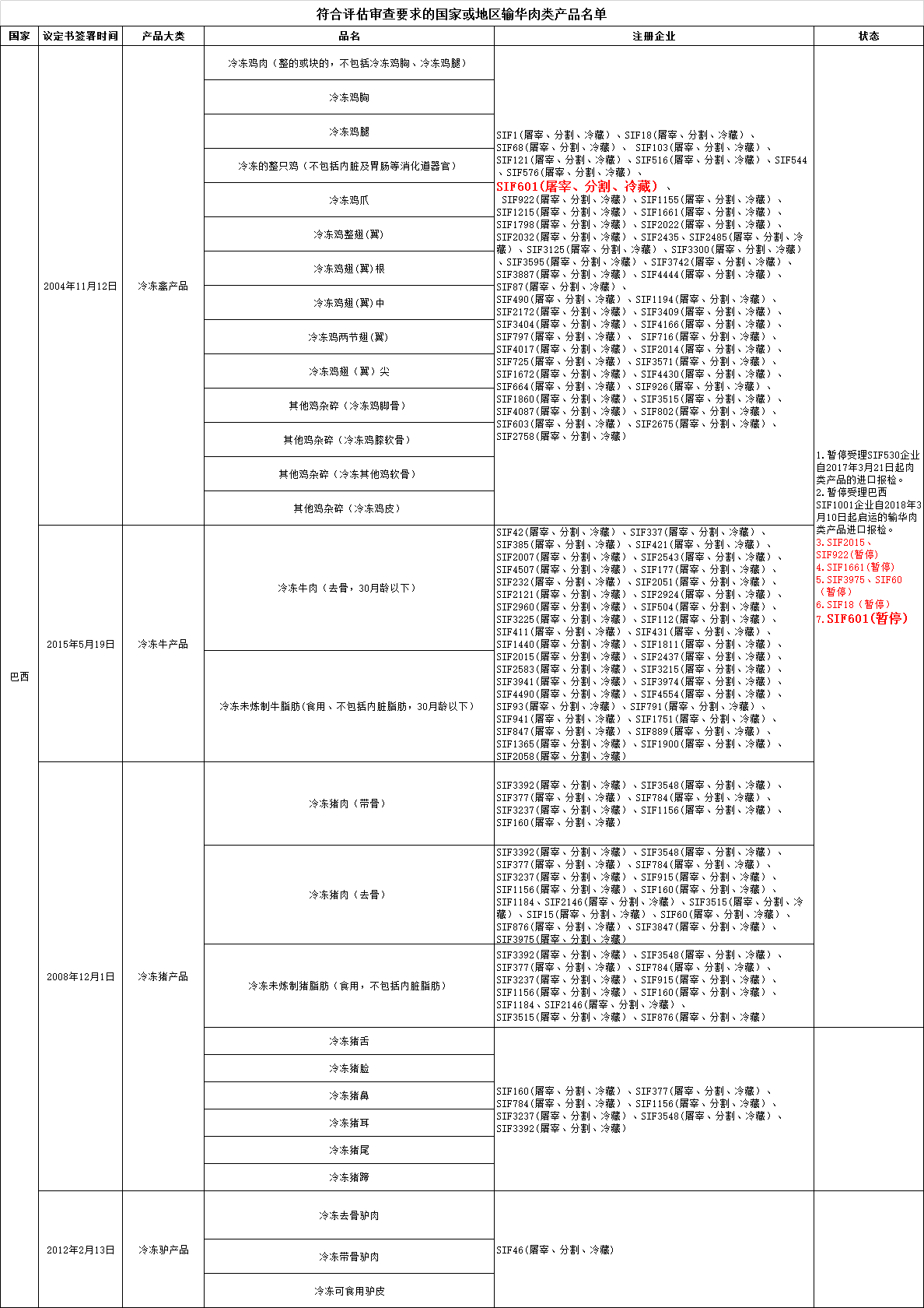 海关总署 |【准入更新】巴西自主暂停1家禽肉企业产品输华(2020年8月25日)