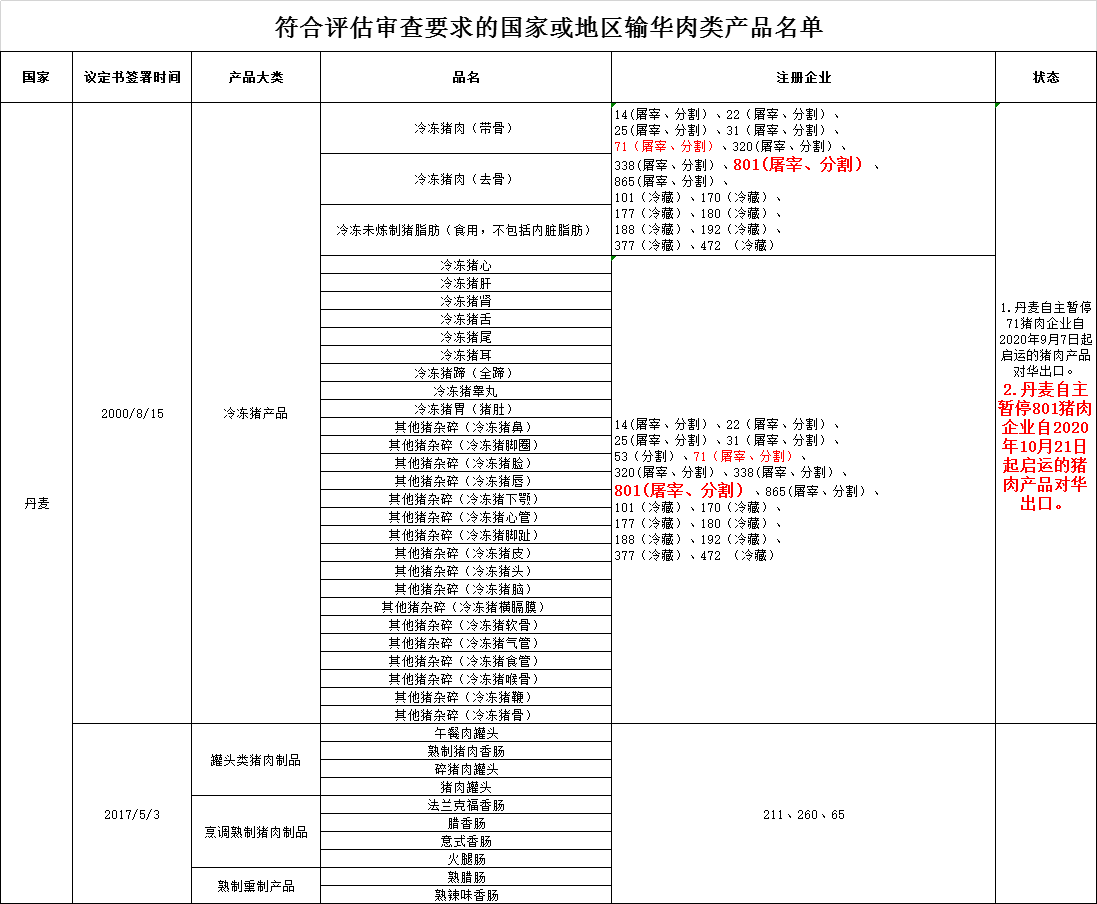 海关总署 |【准入更新】丹麦与加拿大分别自主暂停1家猪肉企业产品输华(2020年10月29日)