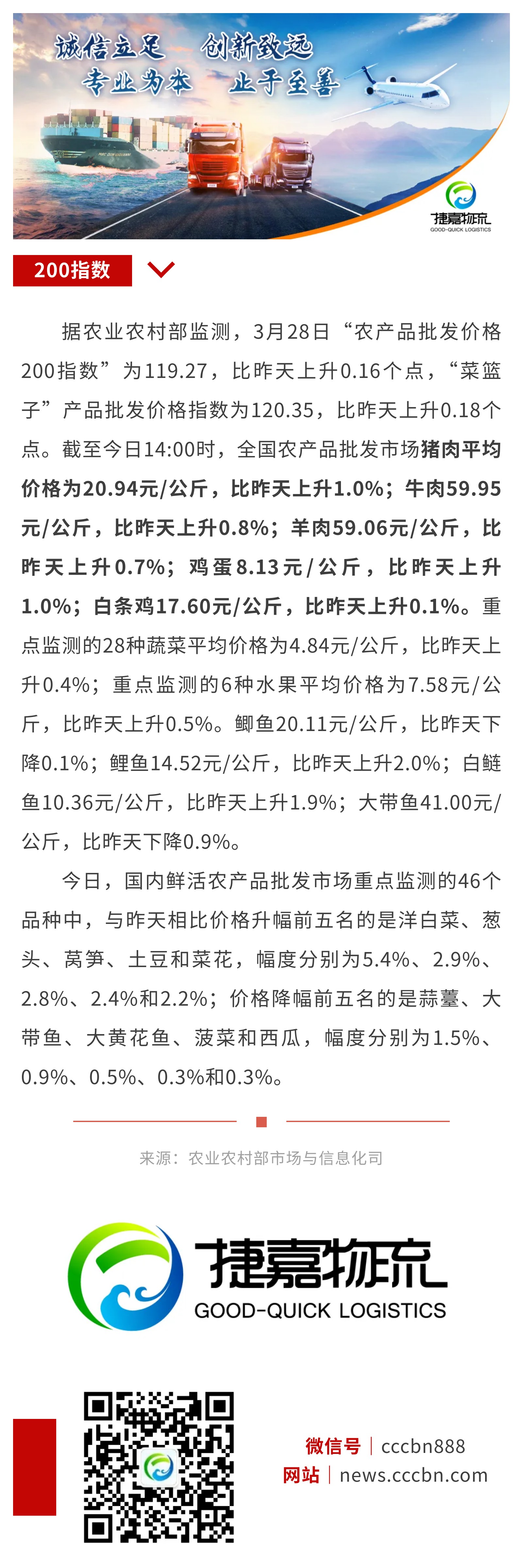 3月28日:“农产品批发价格200指数”比昨天上升0.16个点